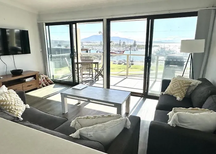 A tengerparti 100 m²-es Penthouse Apartment - Amazing Views, Location & Luxury Bermagui a tornácra néz, és a vendégek számára Wi-Fi-t biztosít, továbbá ingyenes privát parkolót a helyszínen. A Bermagui kikötője 350 méterre fekszik, a Horseshoe Bay pedig csak 8 percnyi sétára található az 1 hálószobás apartmantól.